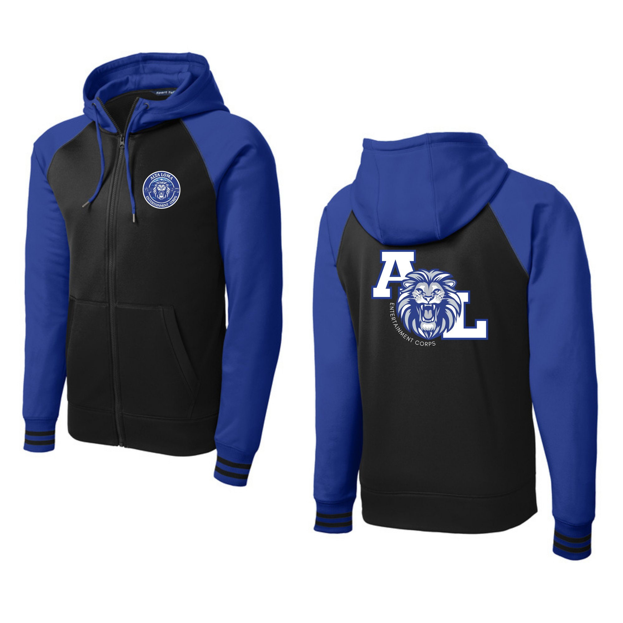 Sport Tek hoodie jacket colorblock raglan sleeves, this varsity-inspired jacket wicks moisture and fights static. Please leave first initial and last name along with your instrument at checkout .